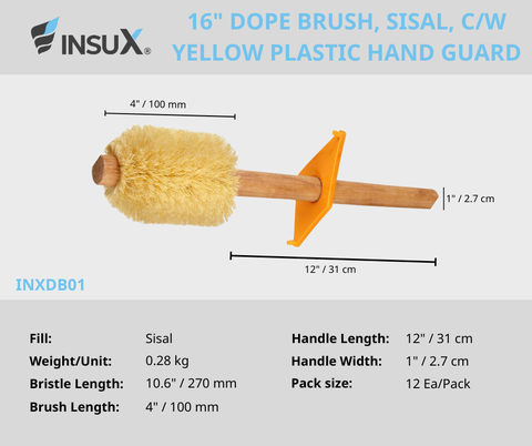 16" Bàn Chải Dope, Lông Sisal, Kèm Tấm Chắn Tay Nhựa Màu Vàng InsuX INXDB01, 12 Cái/Thùng (16" Dope Brush, Sisal, C/W Yellow Plastic Hand Guard) được phân phối bởi INSUMART, Kho hàng linh kiện, dụng cụ và vật tư công nghiệp cho nhà máy, năng lượng, dầu khí và hàng hải.