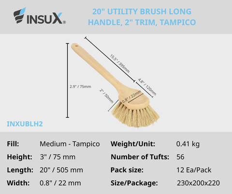 20" Bàn Chải Đa Năng Cán Gỗ Dài, Sợi Tampico, InsuX INXUBLH2, 12 Cái/Thùng (20" Utility Brush Long Handle, 2" Trim, Tampico) được phân phối bởi INSUMART, Kho hàng linh kiện, dụng cụ và vật tư công nghiệp cho nhà máy, năng lượng, dầu khí và hàng hải.
