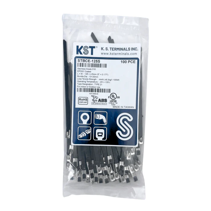 Dây Rút Inox Bọc Nhựa KST, Mã STBCE Series, Bản Rộng 4.5-12.0mm, Chiều Dài 125-1050mm, 10-100 Cái/Túi được phân phối bởi INSUMART, Kho hàng linh kiện, dụng cụ và vật tư công nghiệp cho nhà máy, năng lượng, dầu khí và hàng hải.
