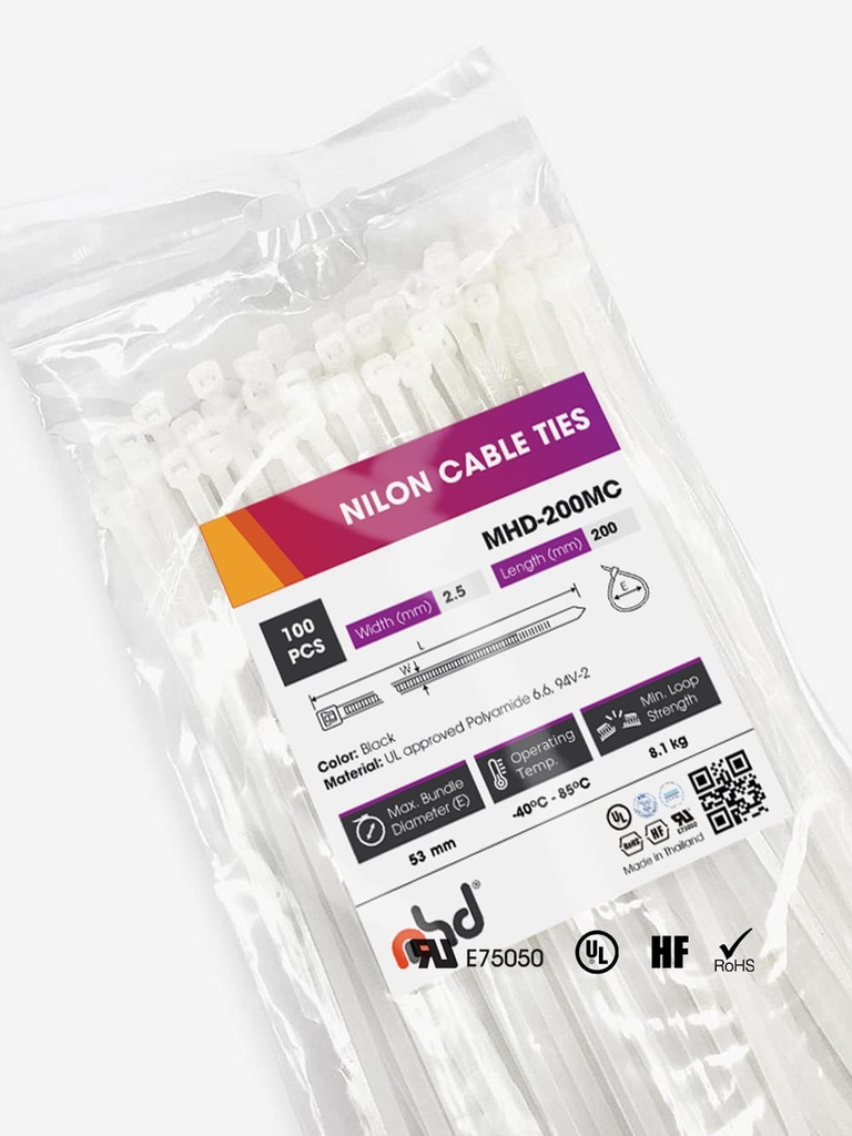 Dây Rút Nhựa Chịu Nhiệt Bee AUTO, Bản Rộng 2.5-9mm, Chiều Dài 100-992mm, Mã MHDF-100MC-370HD, MHD-200MC-920HD, 100 Sợi/Bịch, Màu Trắng được phân phối bởi INSUMART, Kho hàng linh kiện, dụng cụ và vật tư công nghiệp cho nhà máy, năng lượng, dầu khí và hàng hải.