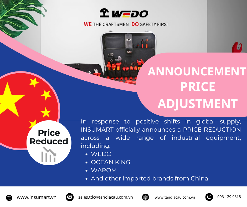 Trước biến động tích cực từ nguồn cung quốc tế, INSUMART chính thức điều chỉnh GIẢM GIÁ trên nhiều dòng sản phẩm thiết bị công nghiệp, đặc biệt:
